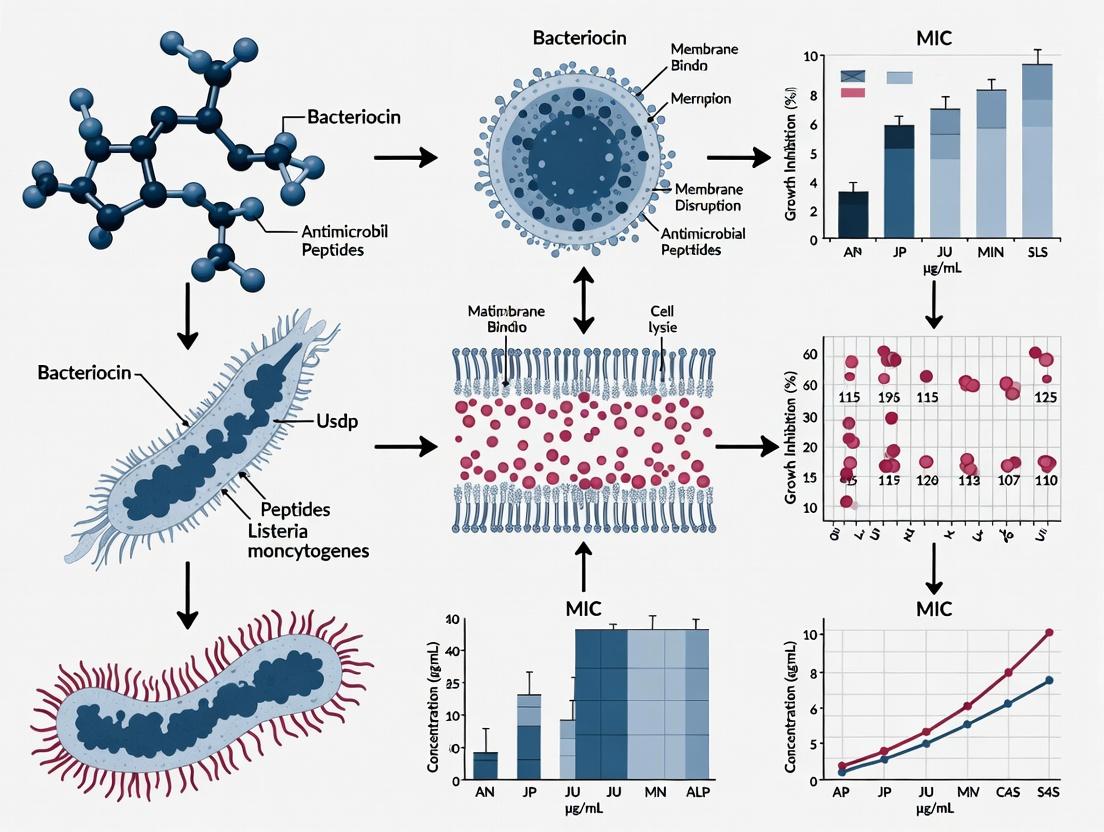 Listeria monocytogenes is a Gram-positive, facultative intracellular bacterium and a significant foodborne pathogen responsible for listeriosis. Infection poses severe risks, including septicemia, meningitis, and fetal infection in pregnant women, with high mortality rates (~20-30%). Its ubiquitous nature, ability to grow at refrigeration temperatures, and biofilm-forming capacity make it a persistent threat in the food chain. Compounding this public health issue is the emergence of strains exhibiting resistance to antibiotics and tolerance to sanitizers, underscoring the urgent need for novel antimicrobials like bacteriocins.