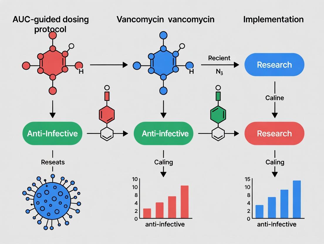 The implementation of an AUC-guided vancomycin dosing protocol represents a significant advancement in precision antimicrobial therapy, moving from a surrogate marker to a direct PK/PD target. This synthesis demonstrates that successful adoption requires a foundation in robust science, meticulous methodological design, proactive troubleshooting for complex clinical scenarios, and rigorous validation through comparative outcomes. For researchers and drug development professionals, this framework is not merely a clinical tool but a model for optimizing other narrow-therapeutic-index antimicrobials. Future directions include integrating real-time therapeutic drug monitoring with machine learning for dynamic dosing, expanding robust pediatric and obese population models, and exploring the protocol's impact on antimicrobial resistance patterns. Ultimately, a well-implemented AUC protocol is a critical step towards personalized medicine, aiming to maximize therapeutic efficacy while systematically minimizing patient harm, thereby setting a new standard for clinical research and therapeutic intervention in infectious diseases.