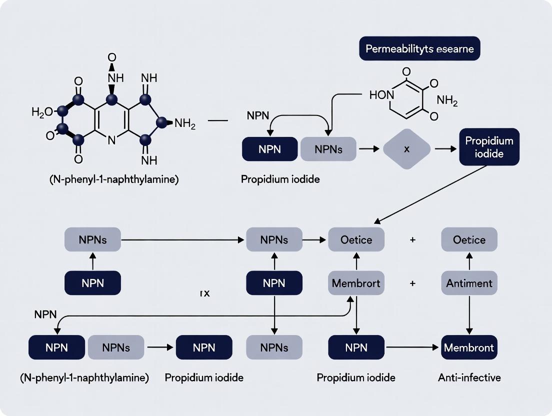 This article serves as a core methodological foundation for a thesis investigating novel antimicrobial compounds. The research utilizes the fluorophores 1-N-phenylnaphthylamine (NPN) and propidium iodide (PI) as complementary probes to quantify perturbations in the permeability barriers of Gram-negative and Gram-positive bacteria, respectively. The integrity of the cytoplasmic and outer membranes is a primary determinant of bacterial viability and a critical target for both established and emerging antimicrobial agents.